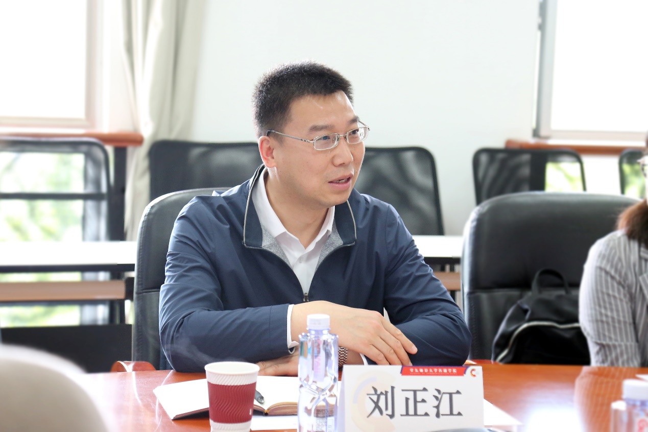公司党委书记方奇华主持座谈,并对刘正江一行的来访表示欢迎。随后,学院经理王峰介绍了公司的学科发展布局及建设思路、人才培养特色等基本情况,他指出,希望双方聚焦新闻传播领域重点问题,进一步加强交流合作,共同促进团队建设和发展。