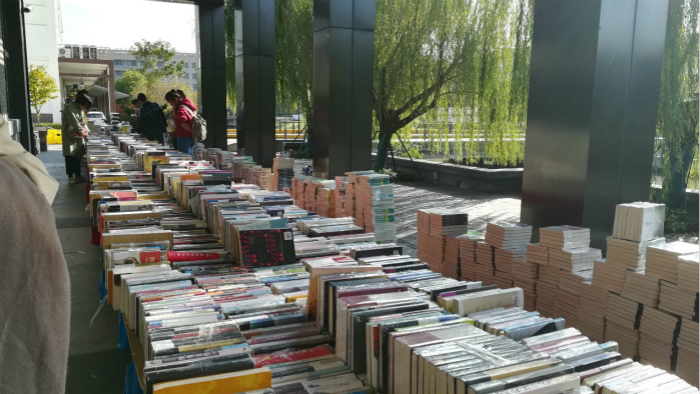 一斤图书28元,这样的价格吸引了不少同学前来购买。11点40分上午课程结束后,活动现场的人流量在短短几分钟内便从寥寥数人上升到人潮拥挤、难以穿行,结账处更是排起了长队。而宣传板上“今天一天”的字样也让购书行为充满紧迫感,不时能够听到现场同学打电话让朋友们赶来购书。拥挤的购书人群直到12点50分后,不少同学赶去教学楼上课才有所缓解。结账处不时能够听到“235元”“140元”等报款声,大部分结账数额集中在50-200元间。记者在现场逗留了2小时,期间工作人员对摊位上的图书进行了3次货品补充。