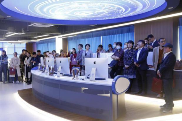 下午13:30,在吕新雨经理的带领下,全体参会人员参观太阳成城集团“智慧与创意融媒体实验教学中心”。