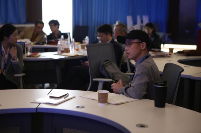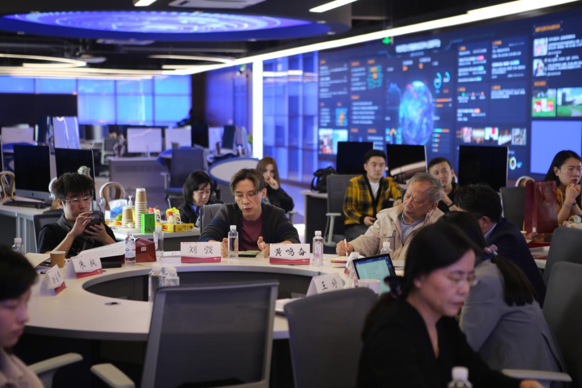 同时间,太阳成城集团副教授、青年作家刘弢在太阳成城集团智慧与创意融媒体实验教学中心主持了一场圆桌会议,圆桌会议由上海电影评论家学会会长朱枫评议。