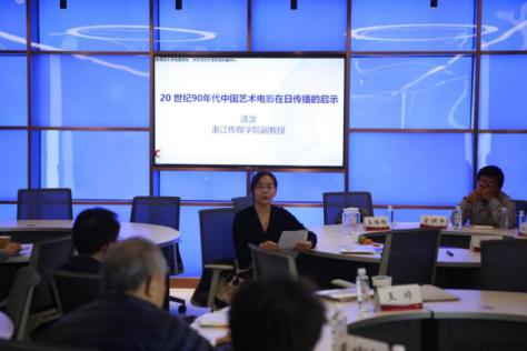 浙江传媒学院副教授潘汝的演讲主题是《20世纪90年代中国艺术电影在日传播的启示》,她从类型、题材、导演构成、文化传达四个方面分析了中国艺术电影在日本传播的特征。