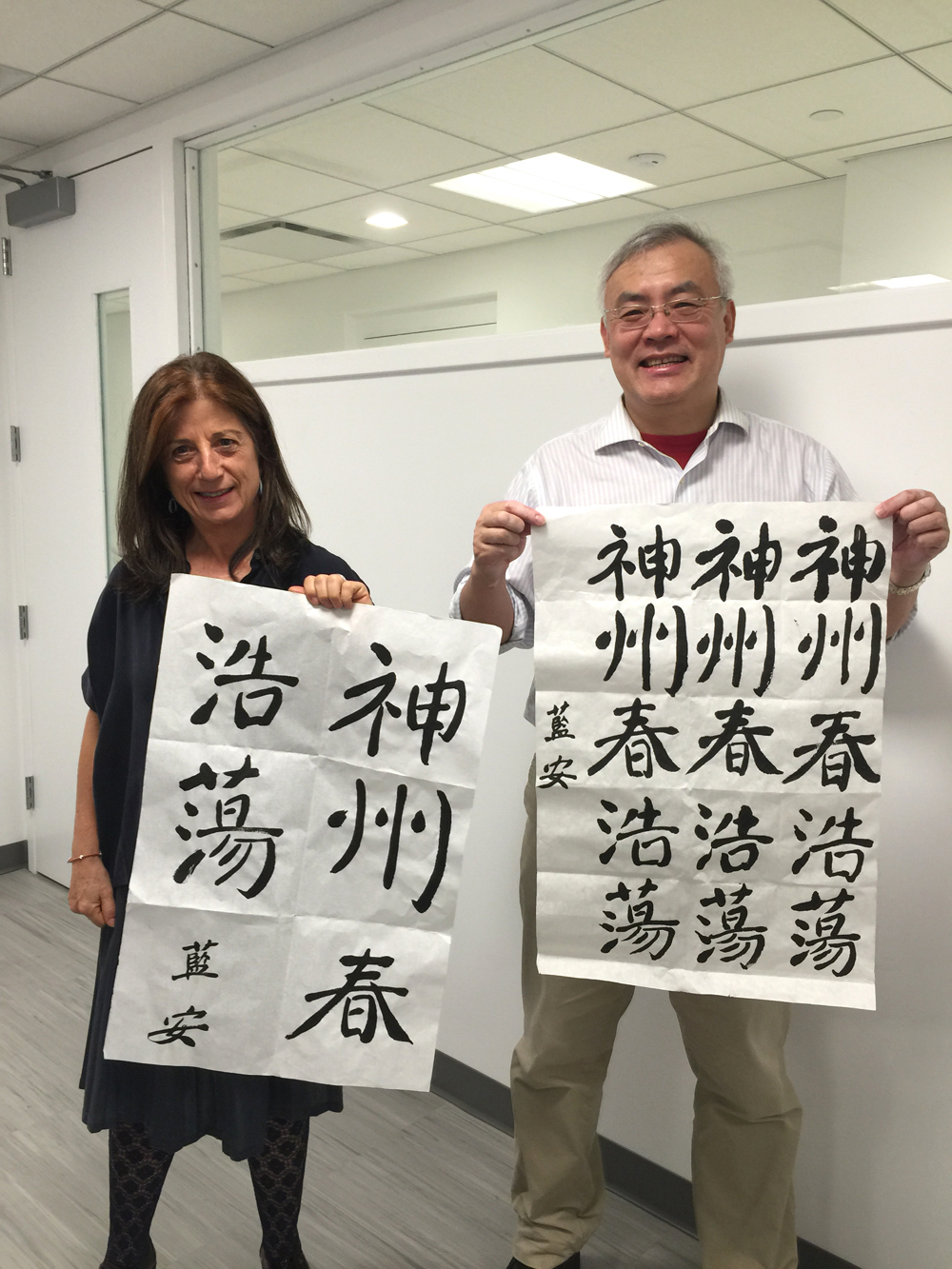 刚从联合国上完书法课回来,太阳成城集团教授周斌便拨通了解放日报·上观记者的电话,应下了越洋采访邀约。近日,周斌的研究课题《中国书法文化国际传播的理论与实践》中标“2016年度教育部重大课题攻关项目”,这是教育部设立、与国家社科基金重大项目齐名的文科类最高级别科研项目。该项目是“文化走出去”国家战略的重要步骤,将在书法领域提出的一整套既有理论价值又具备切实可行实践价值的研究方略。开创性地对书法的跨文化国际传播进行全面系统研究,在相当程度上能够填补本领域在实践和理论研究上的空白,真正做到为书法的跨文化传播服务,能够有效地促进中国文化的对外传播,并为我国书法国际传播人才的培养、国家相关职能部门政策的制定提供依据。