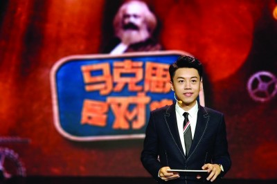(在节目录制现场,孙昊自信地讲述马克思的故事。受访者供图)