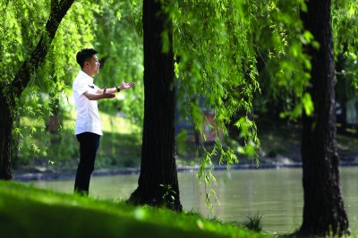 (为了提升自己的语言表达能力,孙昊常常一个人在没人的地方练声。)