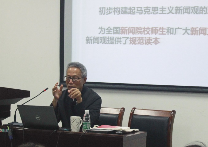 讲座伊始,郑教授便谈到,“这本书也不厚,装帧也很平常,但是我要说这本书分量很重,如果认识不到这本书的分量,学好这本书有难度。如果能够认识到,那对老师同学都会有很大的益处。”改革开放发展过程中需要马克思主义新闻观,这也是这本书的定位所在。