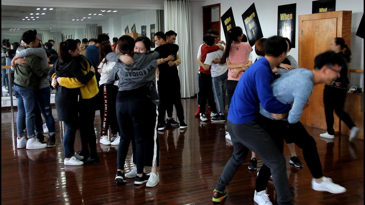 在第二部分的动作产生叙事的练习中,老师们通过“拥抱”练习,启发并引导员工进行形体动作与想象、感觉之间的关系。在“拥抱”与“分离”的演绎过程中,员工们通过自己的想象,用属于自己的肢体语言来表现不同的分别情境。在这个练习中,员工们探索了肢体语言上的许多可能性,并对肢体语言的叙事有了更加深刻的了解。