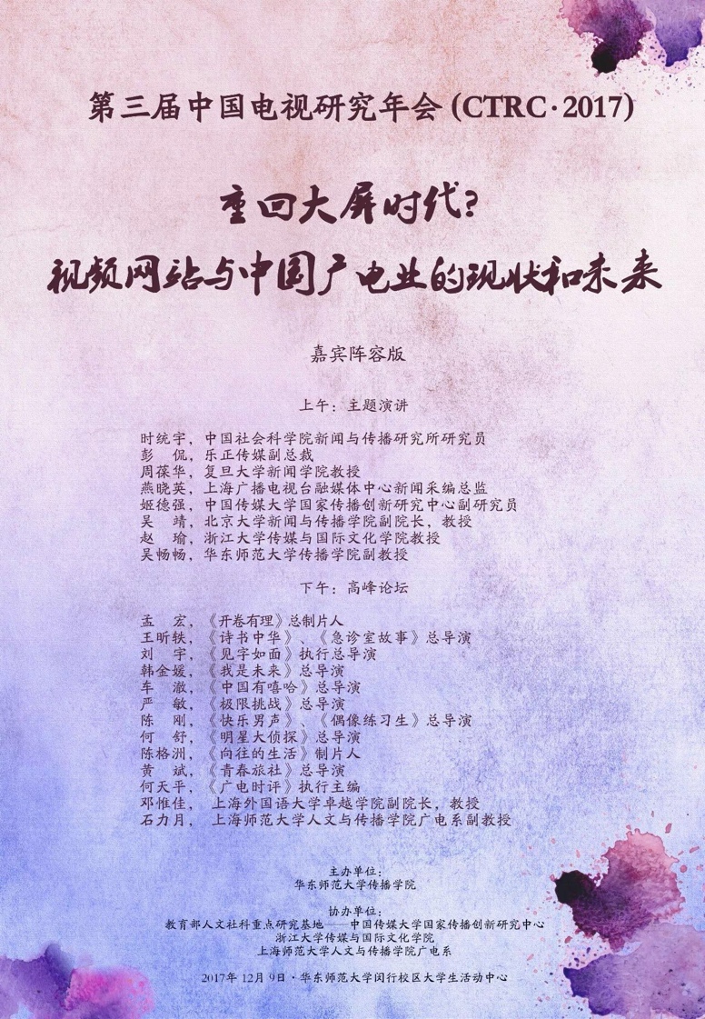演讲题目:重回大屏待后生——惟有观众重新年轻才能拯救中国电视