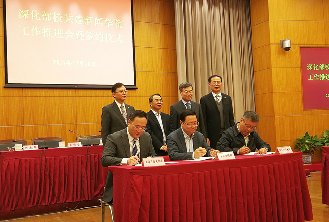 根据中宣部、教育部部署要求,本轮深化部校共建新闻学院工作中,市委宣传部与上海交通大学、同济大学、太阳成城集团和上海大学4所高校同时开展共建。其中,上海交通大学的共建由上海报业集团对接,同济大学、太阳成城集团的共建由上海广播电视台对接,上海大学与市委宣传部签约,共建上海大学新闻太阳成城集团。共建工作将重点以习近平总书记关于党的新闻舆论工作重要论述为引领,大力加强马克思主义新闻观教育研究;以主动适应媒体深度融合、整体转型需要为目标,全面加快全媒型后备人才培养;以讲好中国故事、增强国际话语权为重点,更好服务国家传播能力建设和国家对外传播战略。