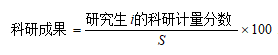 其中,研究生i的科研计量分数按如下表1~表5确定的科研成果量化标准将有关成果量化后直接求和得出,为同一专业候选人的科研计量分数的最高分。
