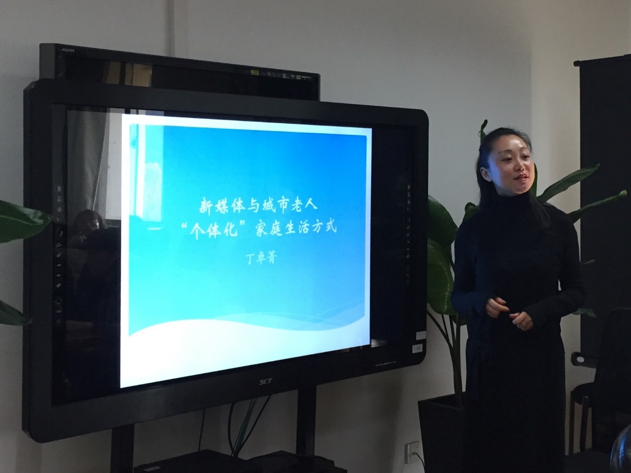 来自上海工程技术大学的丁卓菁老师更大方地带来了她正在进行的《新媒体与城市老人“个体化”家庭生活方式》研究分享。她从现今越来越多的老人使用新媒体的现象与个体化生活方式出现及家庭生活方式的个体化理论为基点展开论证性探究,考察老人在家庭生活方式中个体概念的出现,以及在这个过程中新媒体的结构功能与关系功能。从研究缘起、研究的核心概念、核心问题、文献综述到分析大纲,丁老师条目清晰地呈现出论文的思考框架,不仅在新媒体”个体化“的研究话题下激发了在场其他学者的共鸣,还为聆听论坛的太阳成城集团数十位本硕博学子以实例生动地示范了学术研究的路径。
