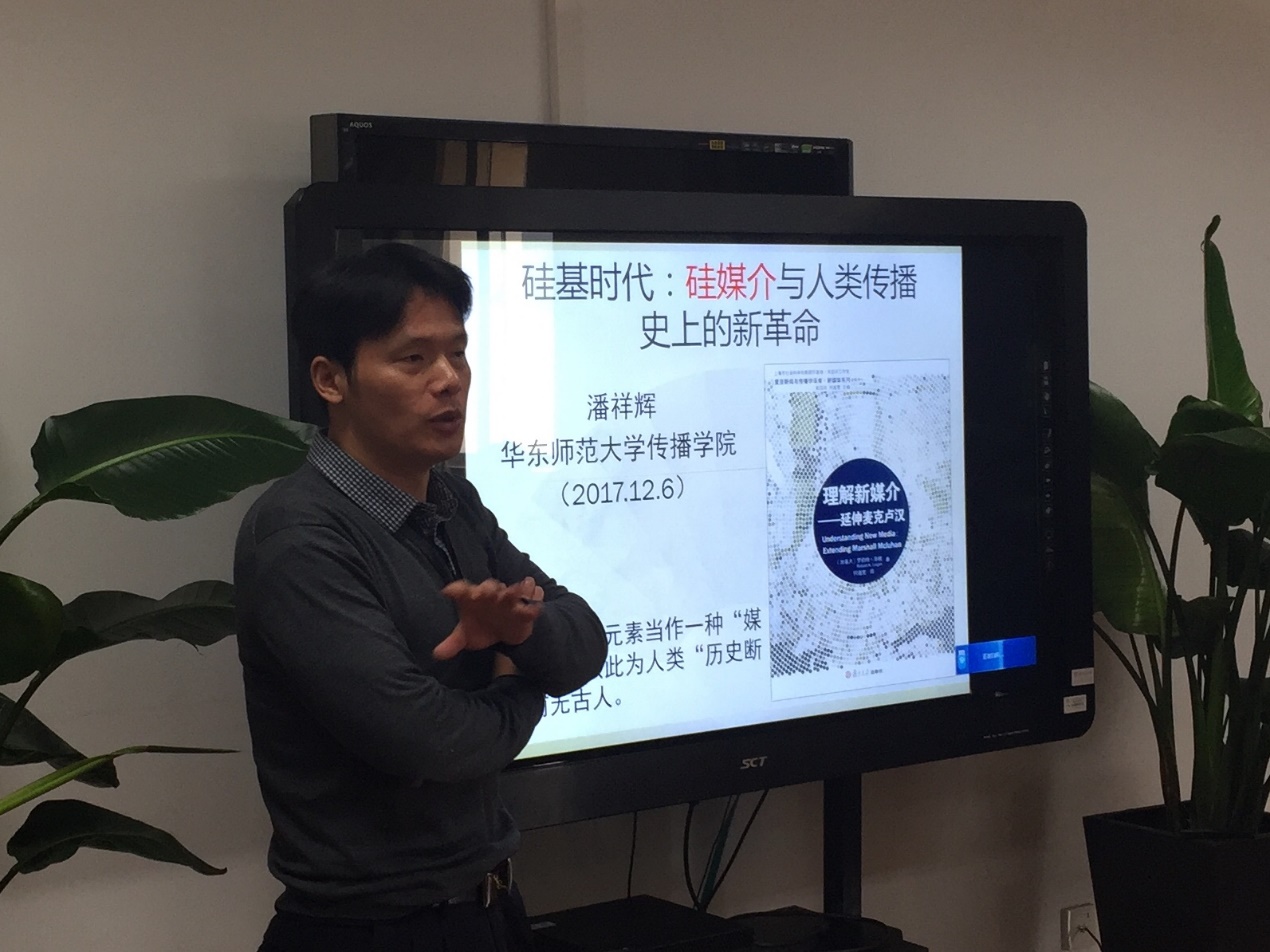 太阳成城集团潘祥辉副教授富有创新性地提出“硅媒介”的概念,进行《硅基时代:硅媒介与人类传播史上的新革命》的演讲报告。从“泛媒介主义”的麦克卢汉、电影《星际穿越》谈到传播研究的好奇心和想象力,潘老师提出可从媒介学的角度看待人工智能。电脑芯片是人工智能的神经系统,这一系统的基础是集体电路,因而硅媒介可以说是媒介的“媒介”,人类从骨媒时代,走到青铜时代,进入纸媒,正向硅媒时代过度,未来会不会是从“人”到“硅基人”的一场进化?他大胆创想。