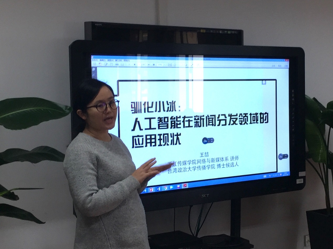 浙江传媒学院王喆老师接着带来一则基于“小冰“的实例的分析报告《驯化小冰:人工智能在新闻分发领域的应用实践》。小冰作为回合制的对话机器人,在浙报集团旗下”浙江24小时“中为用户提供简单的新闻服务。王喆老师联系到新闻应用Quartz和CNN在Facebook上的新闻服务表示新闻作为服务、交流和互动方式的愿景已然可期,这得益于大数据的获取、神经网络算法的优化以及并行算法的廉价,使得人工智能在这个时代获得了很大的发展。然而,我们也必须意识到的是,小冰作为情感型聊天机器人担任智慧型新闻分发的责任,是可信任的吗?曾有一位网友截取了小冰”近亲“——微软聊天机器人Tay被投入推特平台后从开始到最后的语言风格的变化,最终它全然成为了一位满口脏话的反社会反人类分子,人类在网络上一定的非理智投射也许并不能驯化出一位优秀而理性的记者或编辑。现在的程序设计者以“高教育程度的男性科学家觉得极富挑战性的游戏来界定智慧”——如围棋赢过李世石的Alpha Go,又是否是新闻领域所真正需要的智慧呢?