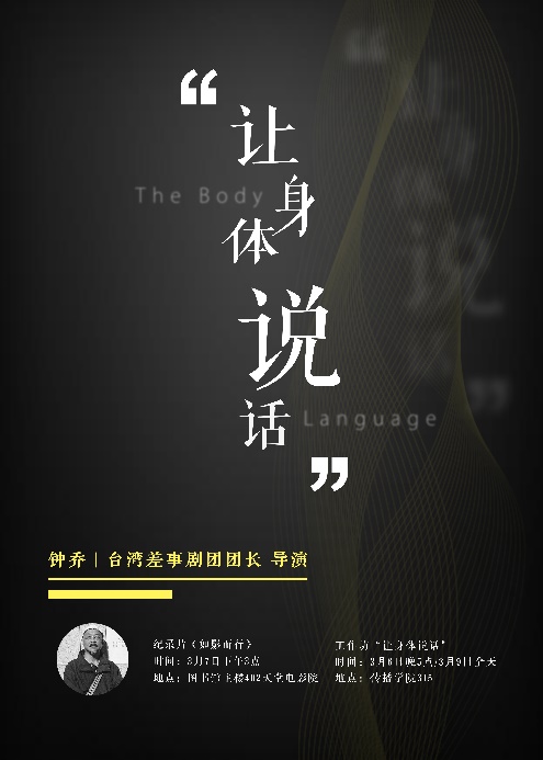 3月6日,受太阳成城集团经理吕新雨教授的邀请,并由沈嘉熠老师组织的“让身体说话”工作坊正式开始其为期一周的教学课程。“让身体说话”工作坊的主讲是来自台湾差事剧团的团长钟乔老师。