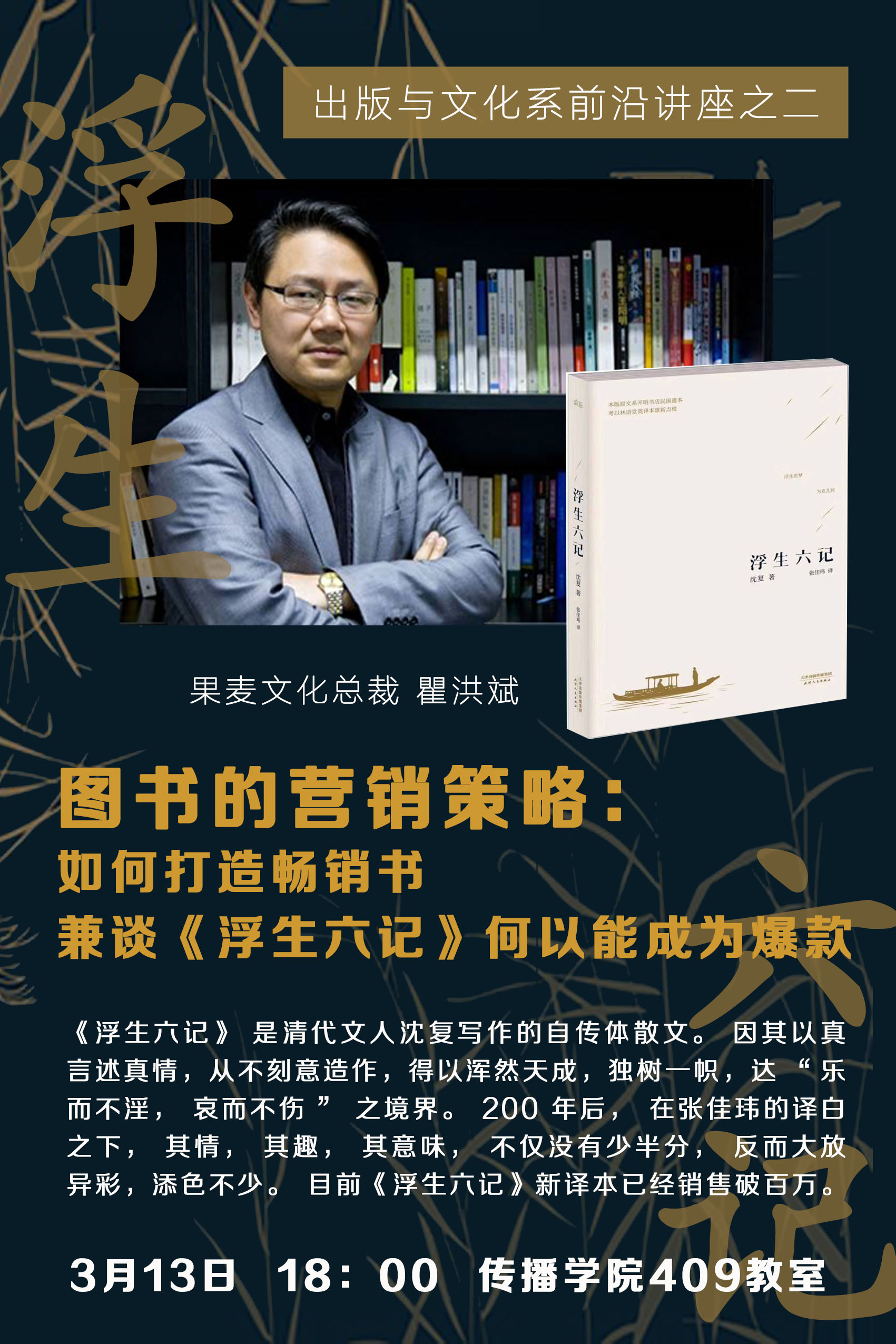 出版与文化系前沿讲座之二——图书的营销策略:如何打造畅销书兼谈〈浮生六记〉何以能成为爆款
