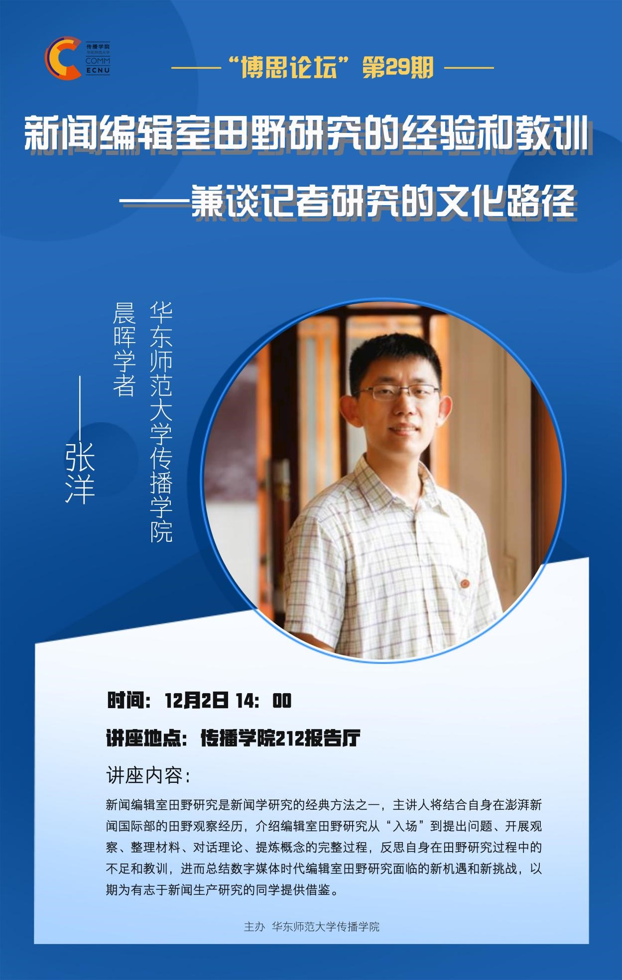新闻编辑室田野研究是新闻学研究的经典方法之一,主讲人将结合自身在澎湃新闻国际部的田野观察经历,介绍编辑室田野研究从“入场”到提出问题、开展观察、整理材料、对话理论、提炼概念的完整过程,反思自身在田野研究过程中的不足和教训,进而总结数字媒体时代编辑室田野研究面临的新机遇和新挑战,以期为有志于新闻生产研究的同学提供借鉴。