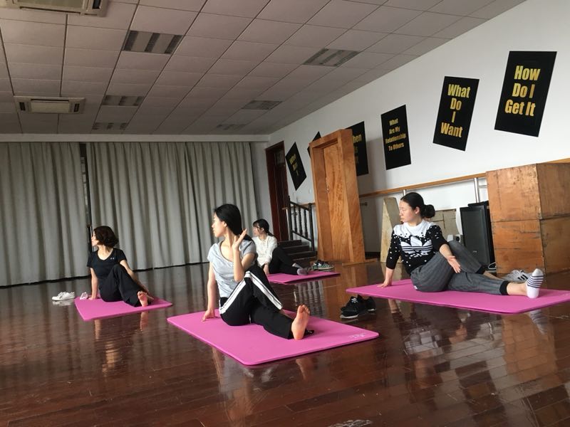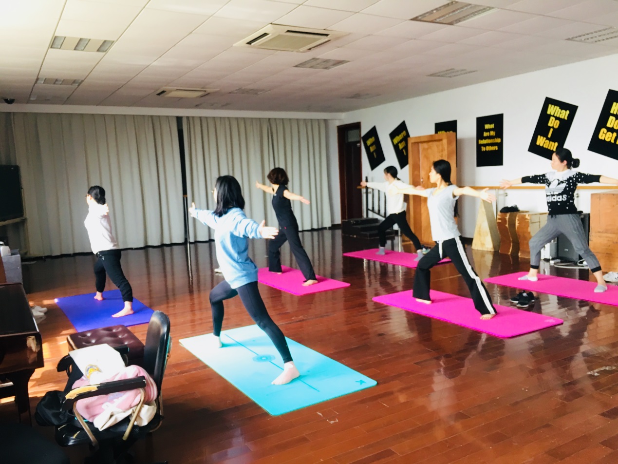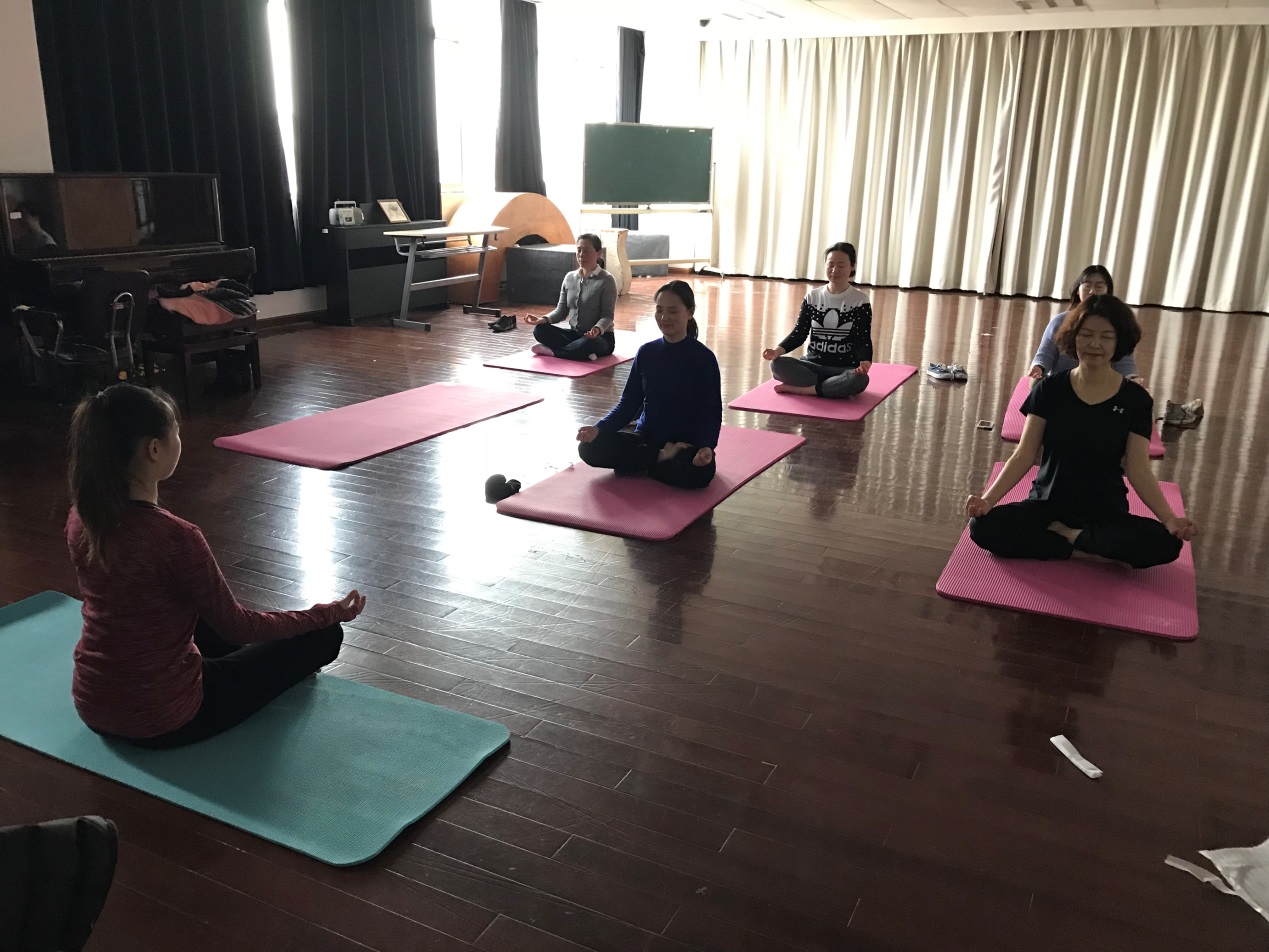 在每次一小时的练习时间里,各位老师在教练的指导下,伴随着舒缓的音乐,进行身心的放松训练,体验瑜伽运动为大家带来的乐趣。