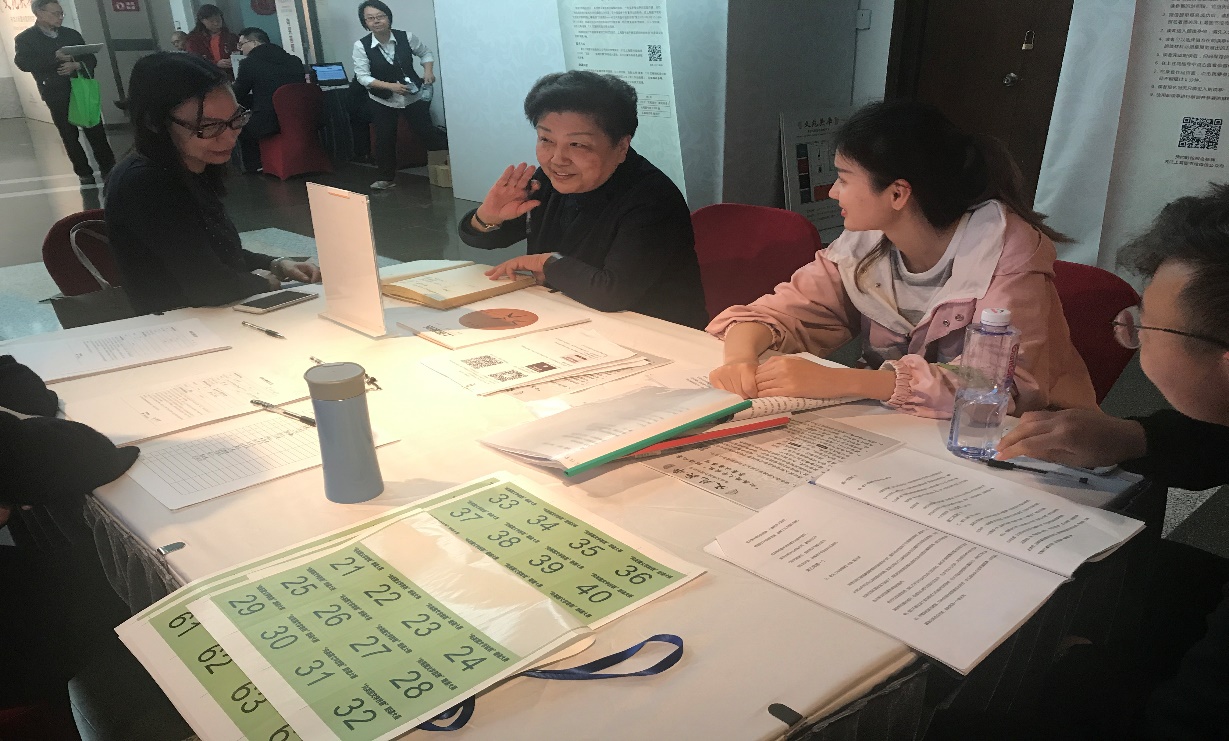 (上海图书馆负责人、艺术工作者和华师大播音专业同学在热情讨论)