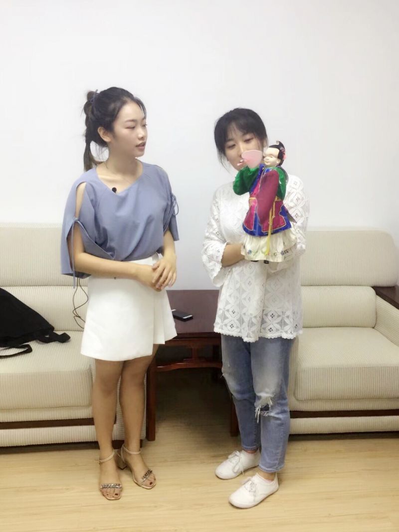 在采访过程中,青年演员郑珏还现场即兴为大家表演了一段木偶戏,小小的木偶在她的手上就像活了一样。在其他同学都为精彩的木偶戏表演赞叹不已的同时,负责拍摄的同学却发现自己遇到了与之前不同的影像拍摄问题。不同于福建的其他剧种,漳州木偶戏的演员只靠手指操纵木偶,表演时需要举起木偶做各种动作,拍摄景别过大无法细致展现演员动作,拍摄景别过小又可能无法拍全较大幅度的动作。负责拍摄的冯蕊同学表示自己完全没心思欣赏表演:“那会儿真的是一直处于紧张状态,特别是拍近景的时候,就怕一下子到镜头外面去了。有的画面构图不会像你事先预想的那样,要根据现场情况有所调整。”