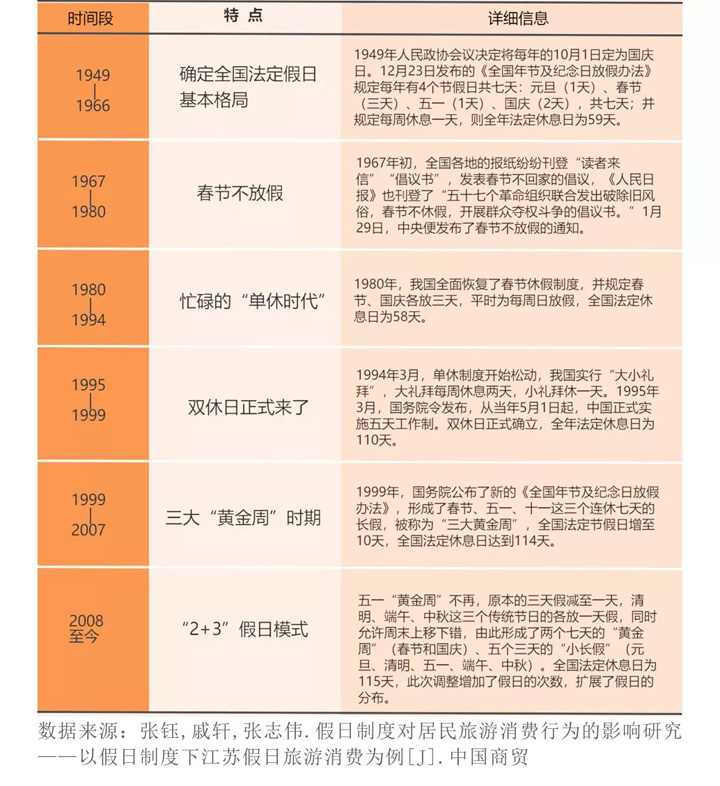♦ 假日天数总体上呈增多的态势,双休日制度确定以来,假期数量总体无显著变动,但长假模式被逐步打散。02假日经济和“黄金粥”的烦恼