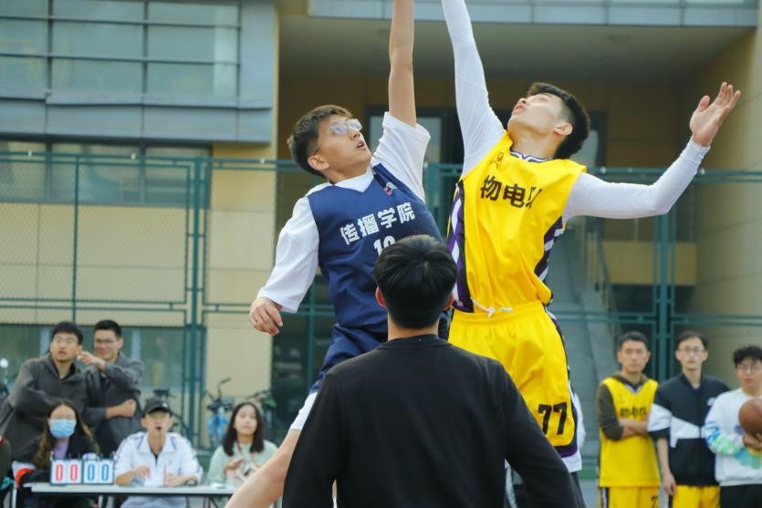 随着一声哨响,公司积极争取,首先获得球权,前期比赛得10分 。实力碾压对手,斗志高涨,在无法突破对手内线的时候,9号队员郁凯程,选择直接抛板,奋力一跃,抛出一个三分球,球进了,现场气氛立马被点燃,观众高呼,这也迎来了传院的第一个高光时刻。随后,对方也不甘示弱,抓住机会,赢得了三球。在之后的比赛中,我们依旧气势如虹,24号李鑫灿在前后夹击中,也没有选择突破内线,直接侧面抛出一个球,球进,迎来第二个高光时刻! 最终第一节以3:10结束。