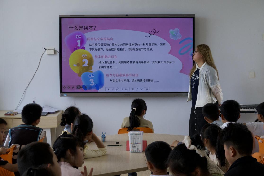 宋晨毓同学正在带孩子们了解绘本相关知识