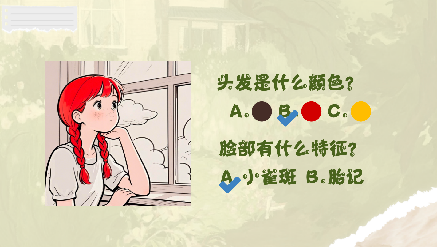 第一次课程由刘妍君老师主讲。课程伊始,刘老师借助爱德华王子岛的风景图片和绿山墙农舍的影像,将课堂变为一场“云旅行”,让孩子们身临其境地感受安妮的故乡魅力。课堂上,刘老师巧妙结合音视频素材,播放了书中经典情节的电影片段,并通过趣味问答引导孩子们记住安妮的标志性特征——红头发与小雀斑,她鼓励孩子们像安妮一样学会悦纳自己。