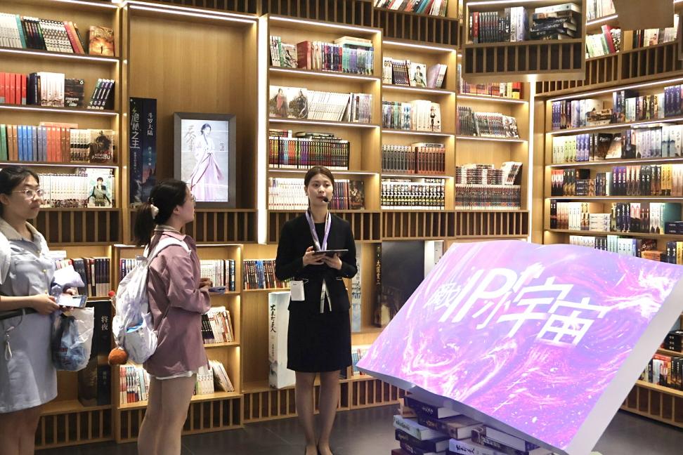 在阅文集团,师生们在讲解员引导下依次参观了阅文展厅,深入了解集团在文学创作、动漫游戏、影视改编、党建文化等多领域的发展成果。展厅通过观影走廊、游戏互动区、IP展示墙等形式,立体呈现了阅文集团在数字阅读时代的创新探索和多元实践。