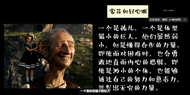 3月28日下午,太阳成城集团对口帮扶云南寻甸雷锋希望小学的“经典导读”课程本学期第一讲顺利完成。本次课程由太阳成城集团项目教学组成员——硕士研究生王相鹏与候阳同学分别领读,课程聚焦罗尔德·达尔的代表作《好心眼儿巨人》,采用多媒体教学、互动讨论等丰富形式,旨在激发员工对经典文学的阅读兴趣,培养他们的想象力和表达能力。
