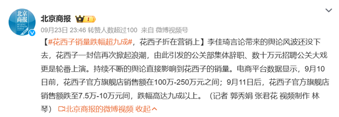花西子销量跌幅超九成