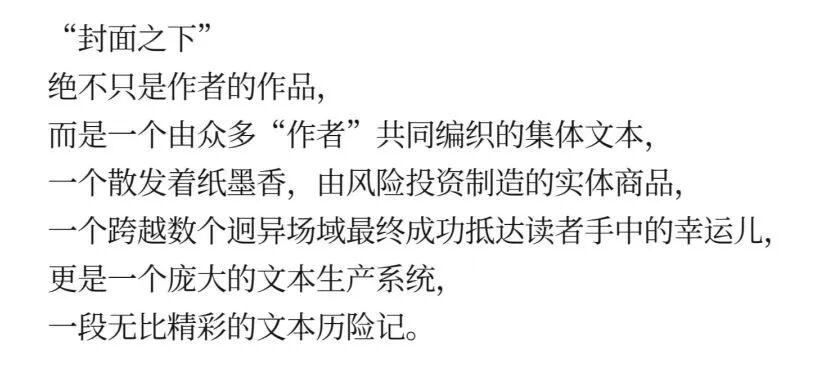 于文老师指出《封面之下》的第二部分“从创作场域到生产场域”和第四部分“从生产场域到接受场域”是其他图书未曾提及的,并列举了罗伯特·达恩顿等学者的著作,指出以往的研究虽然都将一部作品的文本及其意义视为诸多群体行动的共同建构,但基本上分兵突进,各自集中在某一板块,默认文本在各个场域之间是自然转移的。而克莱顿·柴尔德斯试图解决的正是文化生产研究中创作和接受两条研究路径分离的问题。
